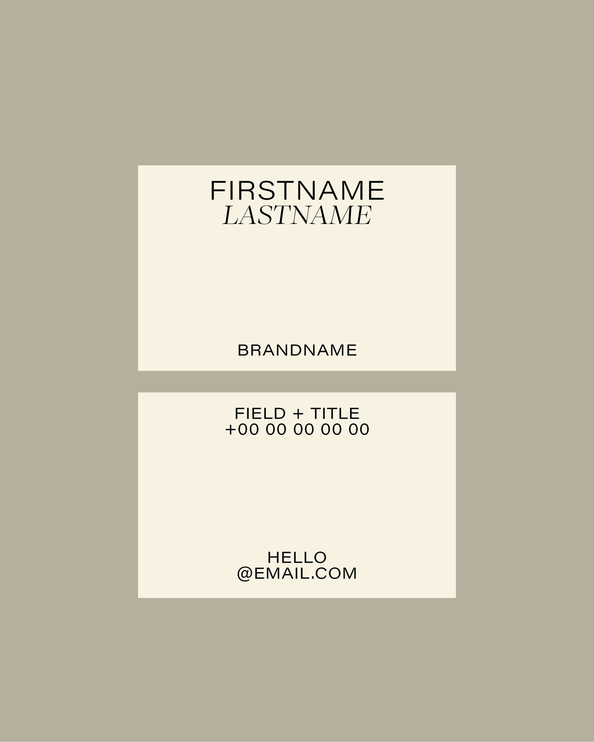 The layout keeps the focus on your name and details, maintaining a modern and minimal aesthetic.