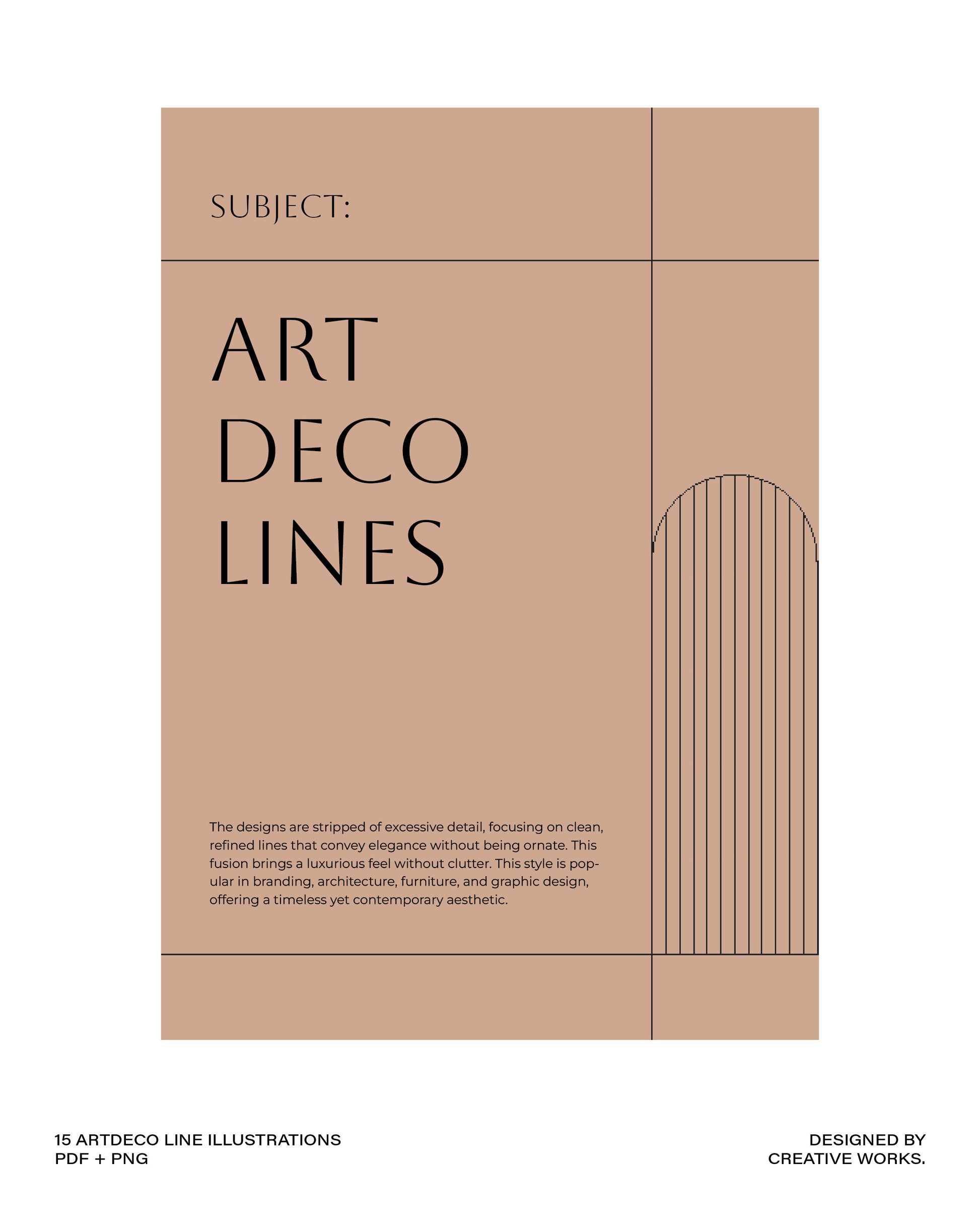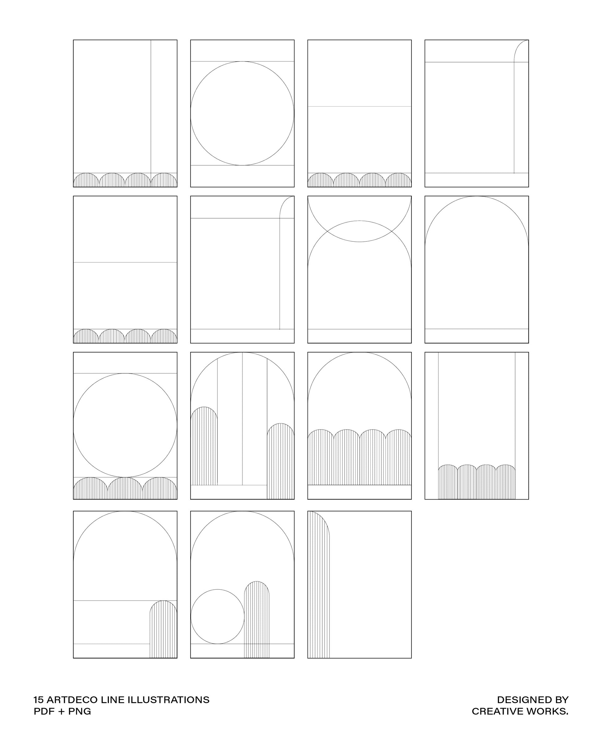 Add a touch of timeless elegance to your designs with this exclusive collection of 15 Art Deco-inspired line illustrations. Featuring clean lines, geometric shapes, and sophisticated detailing, these illustrations are perfect for creating luxurious, vintage-inspired visuals with a modern twist.
