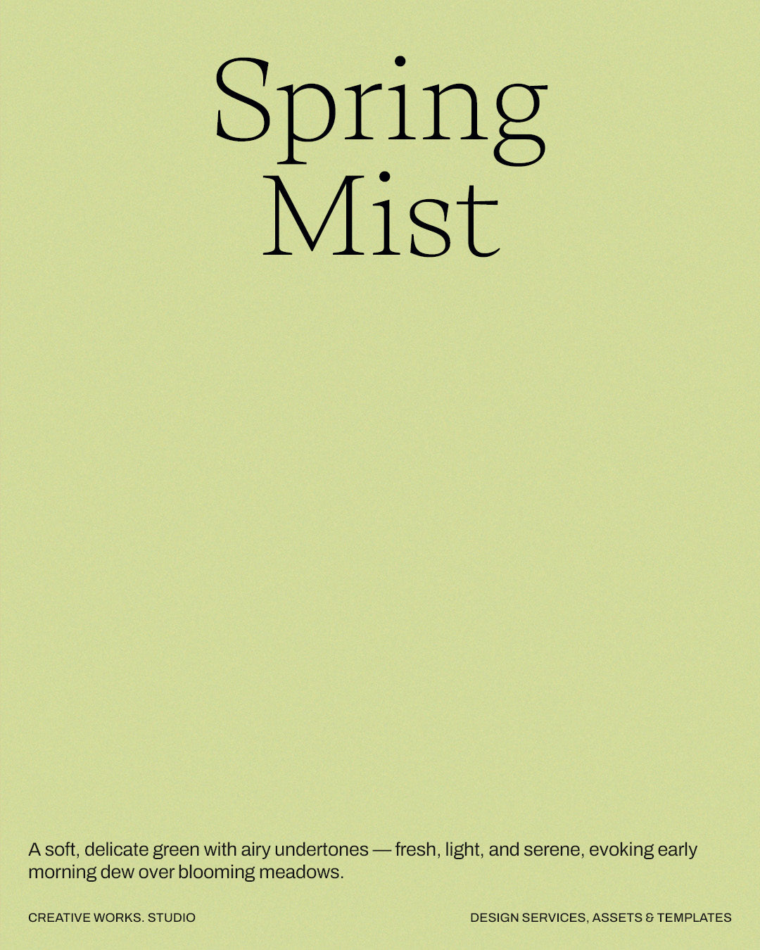 A soft, delicate green with airy undertones — fresh, light, and serene, evoking early morning dew over blooming meadows.