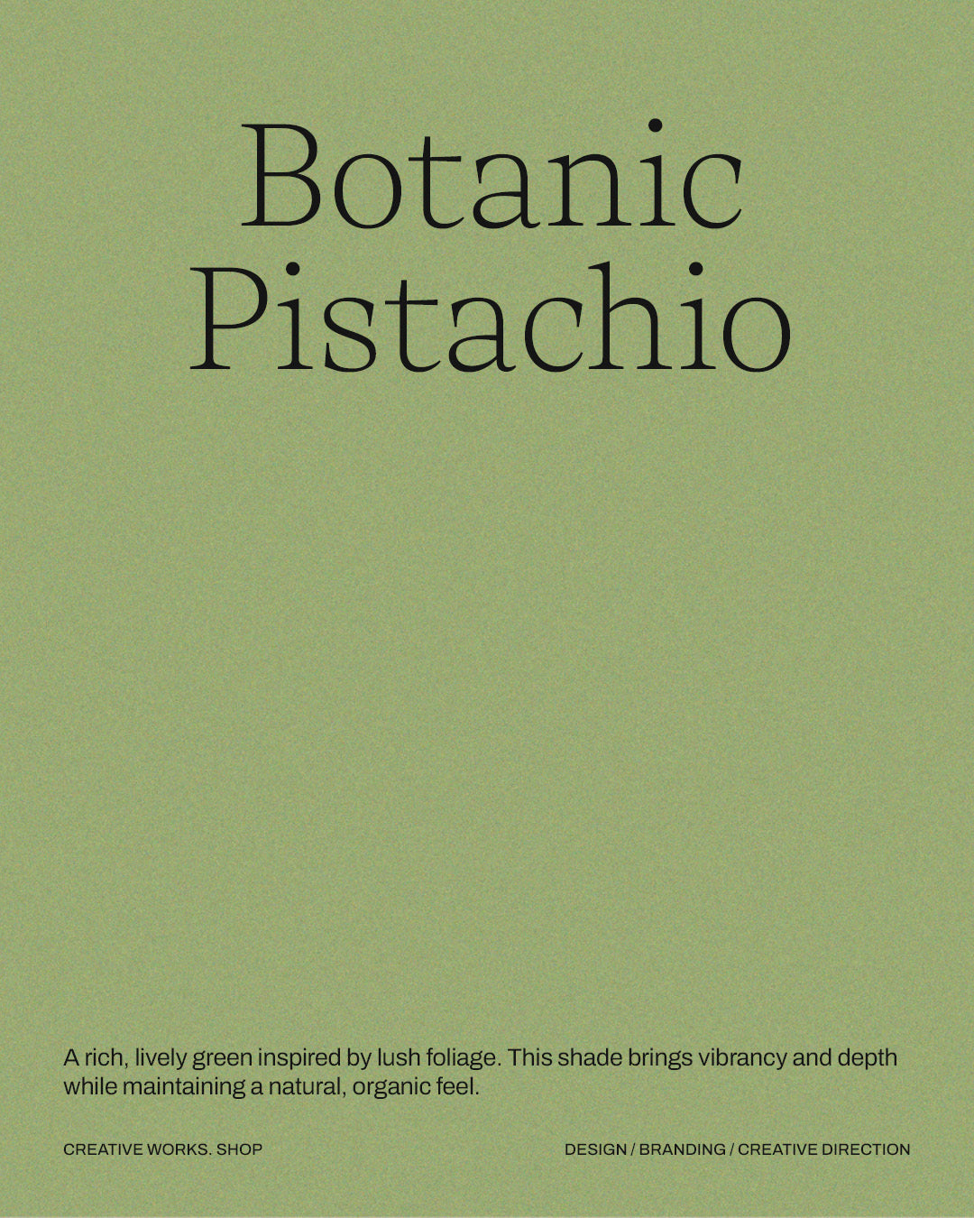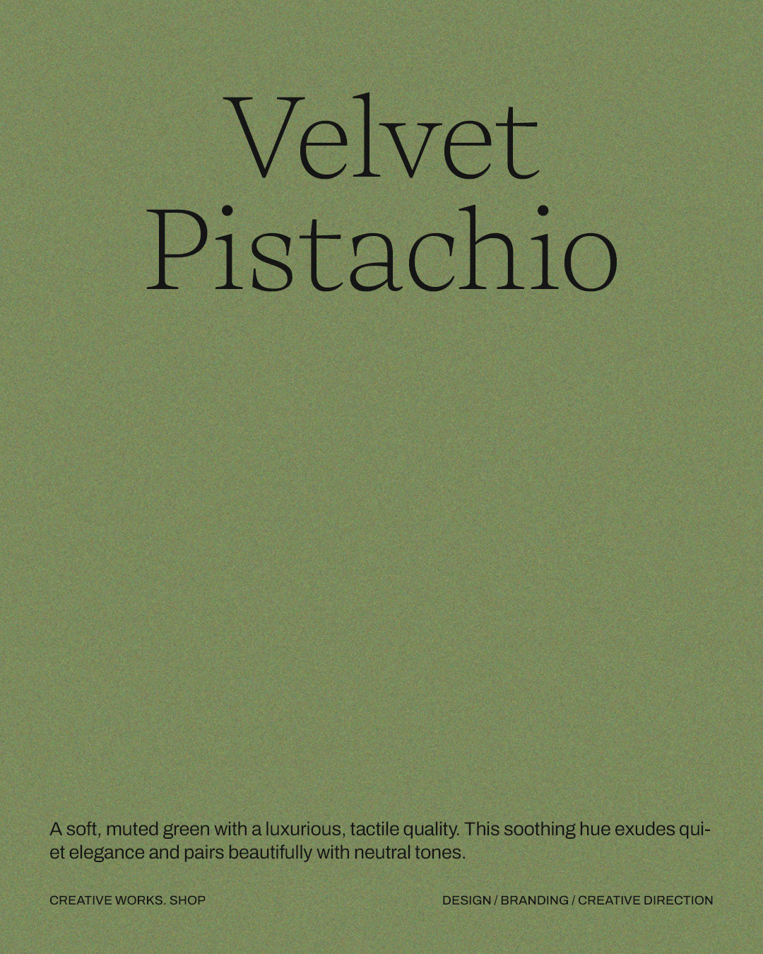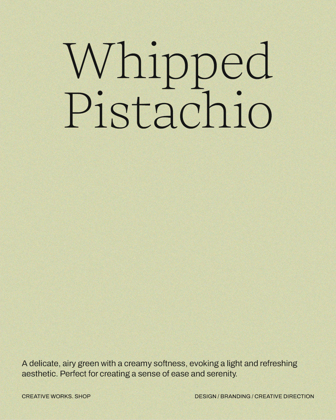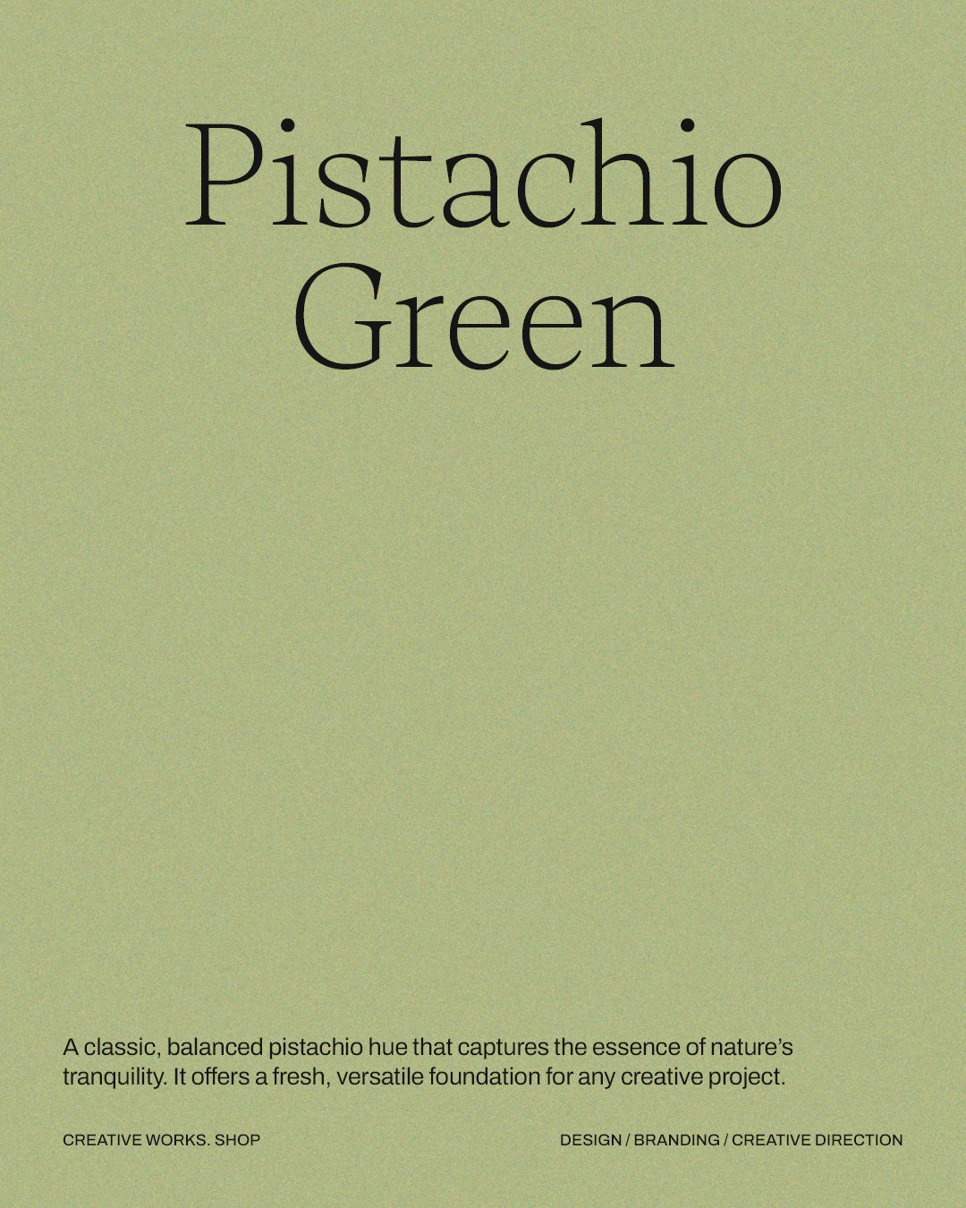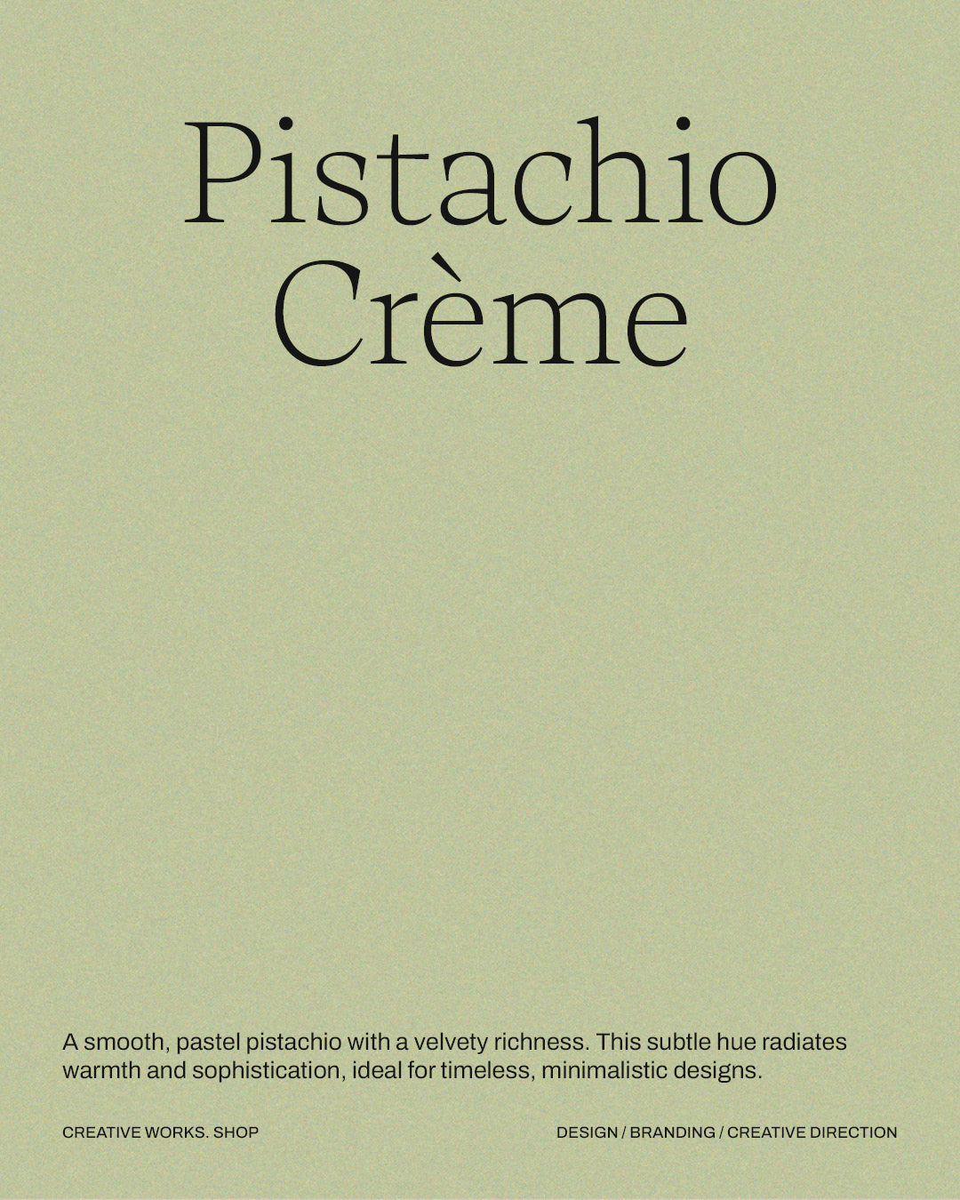 Inspired by the quiet beauty of spring’s first bloom and the soft whisper of nature’s calm, Pistachio Mist is a gentle embrace of freshness and light. This soft green carries a subtle glow—like a breath of new beginnings—bringing a sense of peace and natural grace to your designs. It’s a color that feels like a soft sigh, effortlessly uplifting and serene.