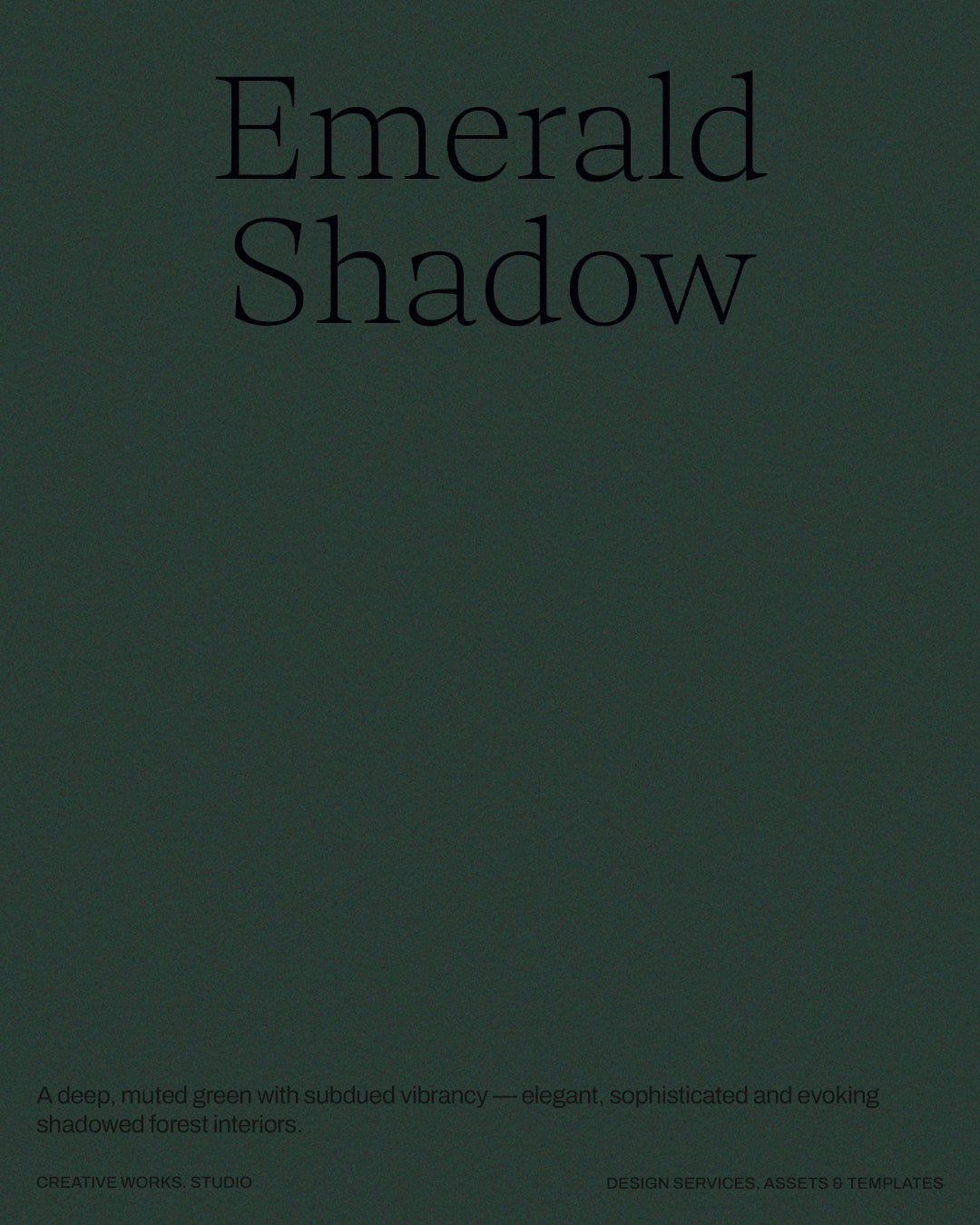 A dark, smoky green with subtle depth — mysterious, introspective and quietly dramatic, like a dense grove at dusk.