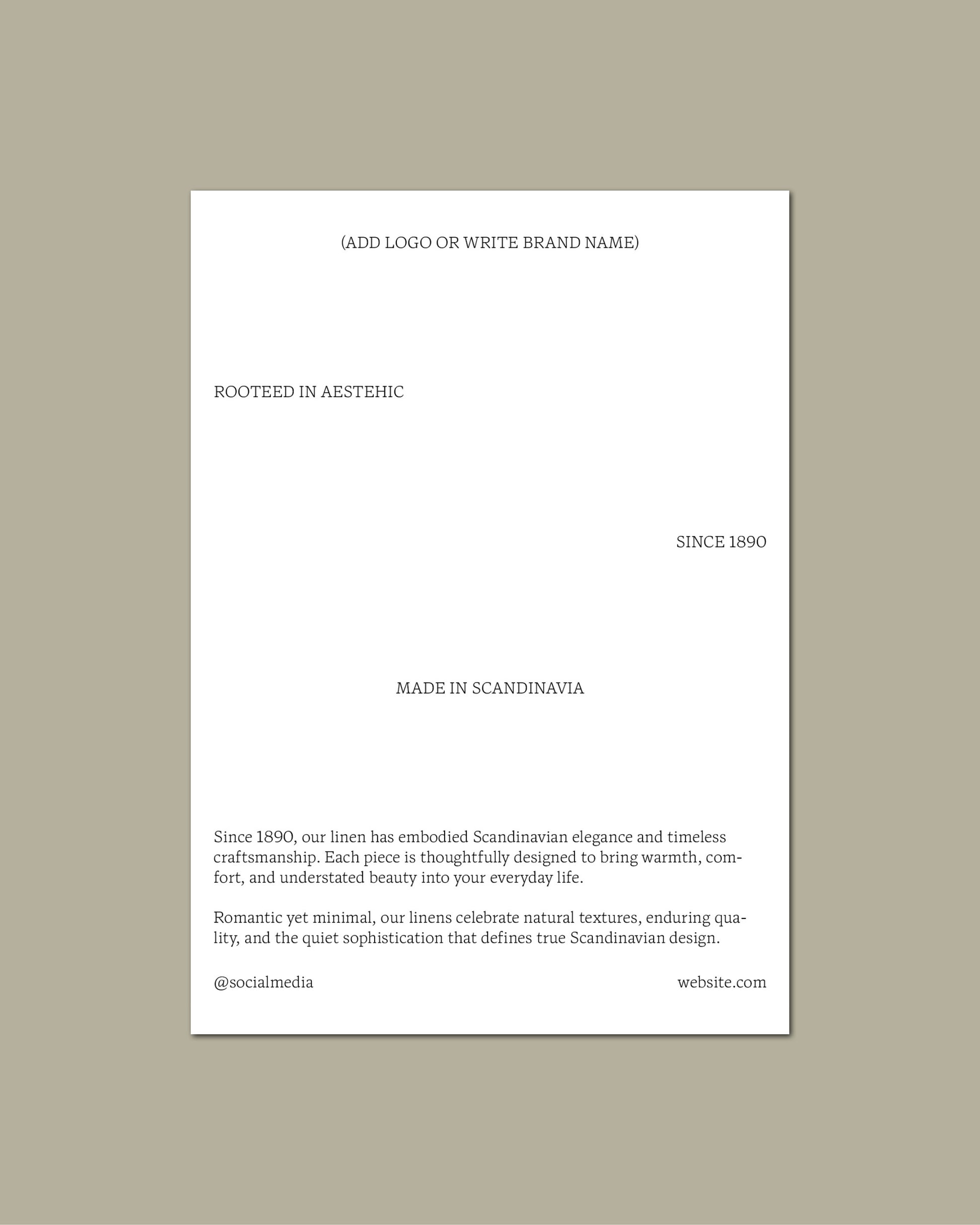 Designed with spacious, elegant typography and a dedicated image area, your brand name is highlighted prominently while contact details are arranged neatly for a modern, minimal aesthetic. Perfect for showcasing your brand in a clean, creative way.
