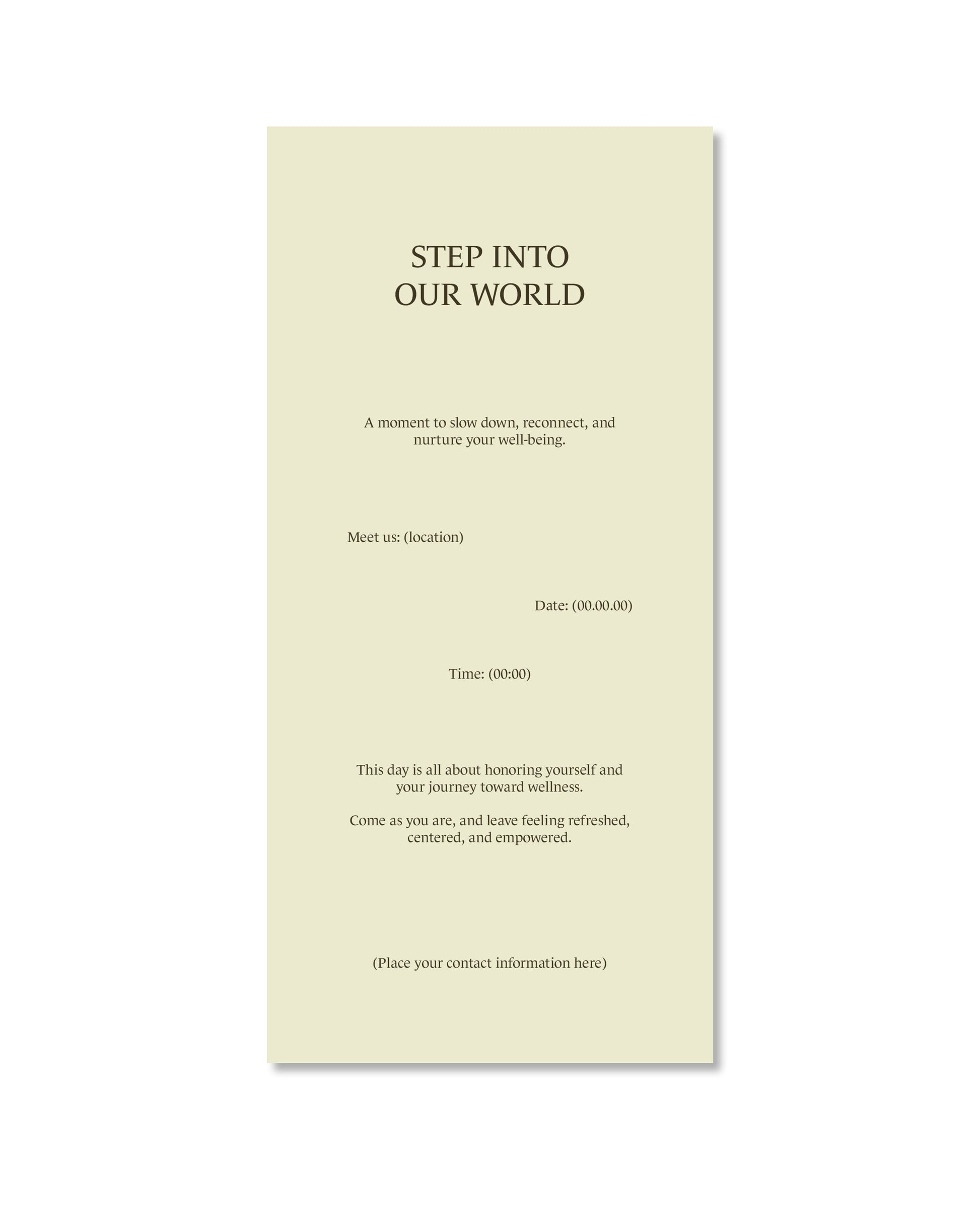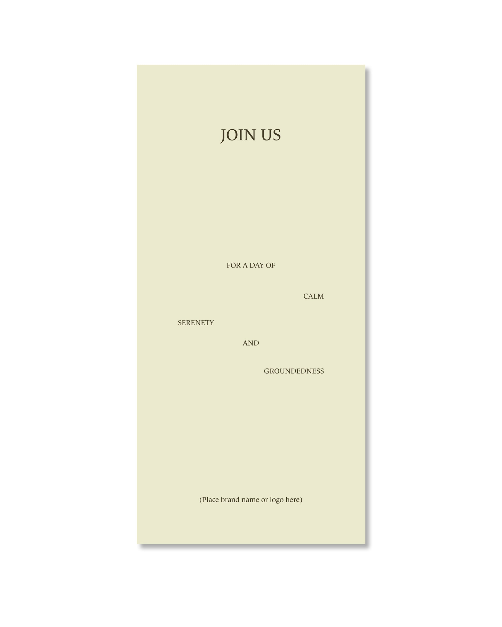 A structured event flyer designed with spacious typography and intentional rhythm. Created for brands that value calm presence and visual clarity. Ideal for announcements, invitations, or curated brand experiences.