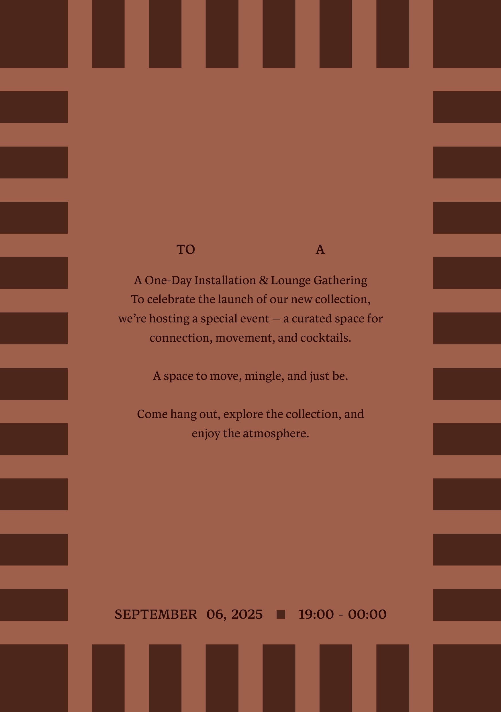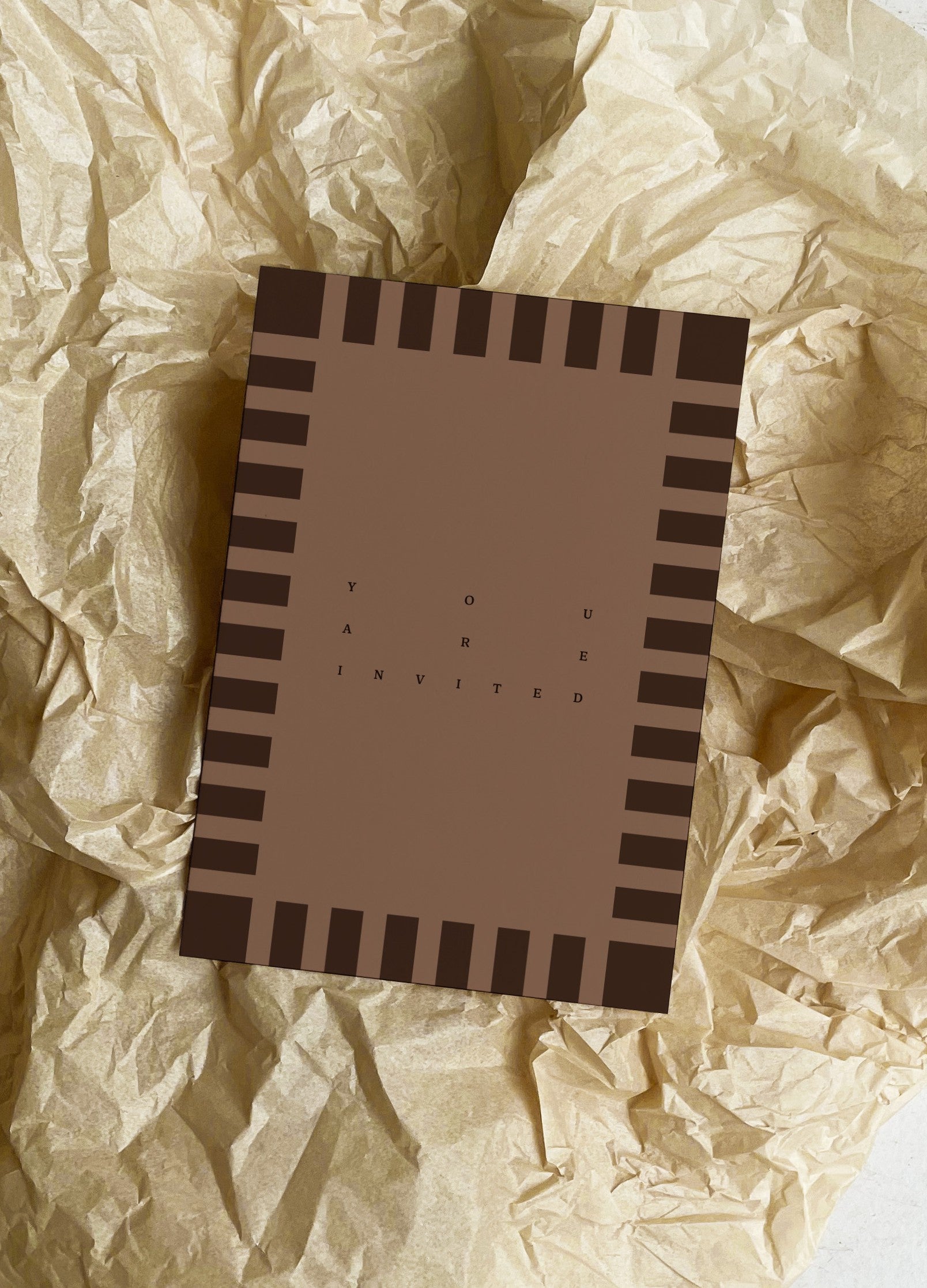 A clean, modern invitation design featuring a minimal striped pattern placed subtly in the corners to create understated attention and a calm, curated vibe.