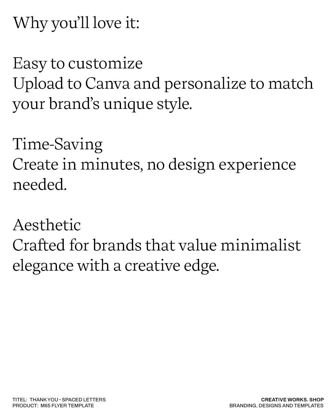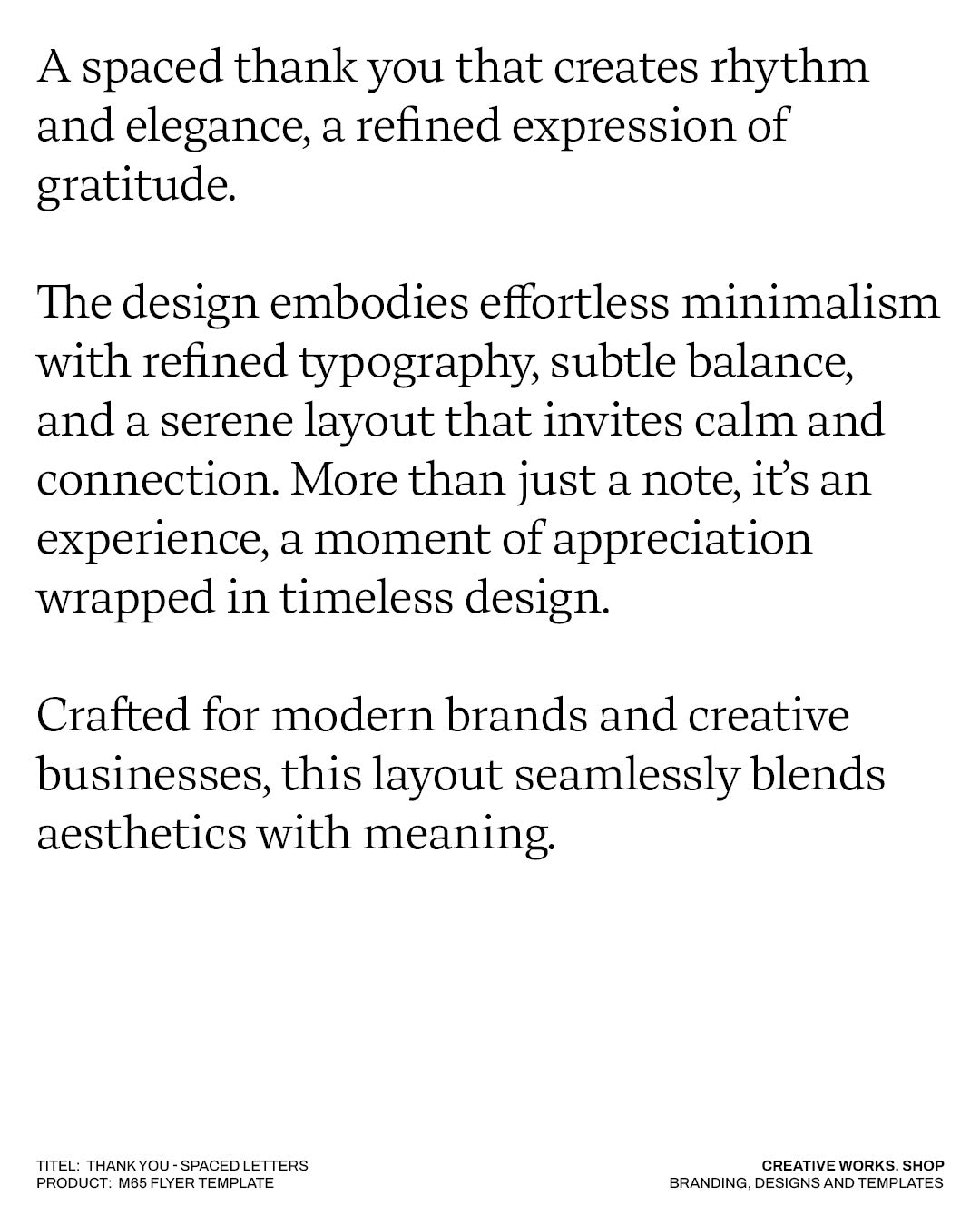 A spaced thank you that creates rhythm and elegance, a refined expression of