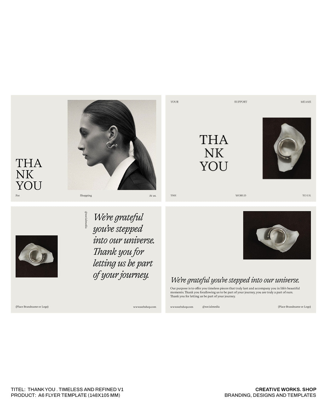 An aesthetic, minimalist A6 “Thank You” flyer template with a creatively refined touch.